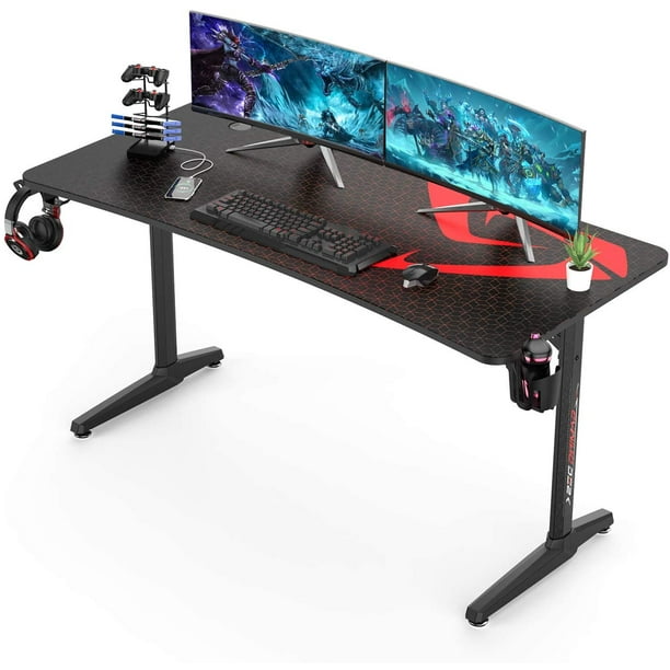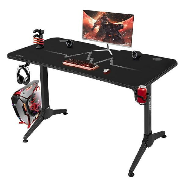 Waleaf 55 Inch Gaming Desk Home Office Computer Desk With Mouse Pad T Shaped Professional Gamer Game Workstation Cup Holder And Headphone Hook Black Walmart Com