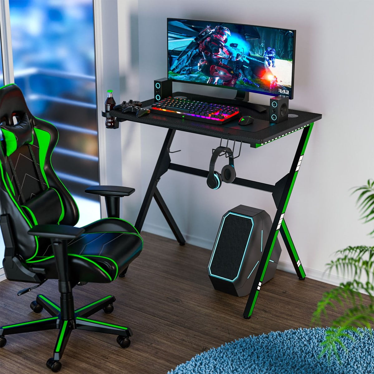 Bestoffice Gaming Desk Computer Desk Home Office Desk With Cup Holder Headphone Hook Walmart Com